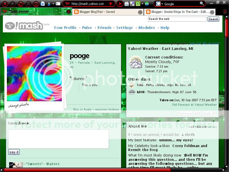 If anybody would like an invitation to join Yahoo! Mash, feel free to contact me at pooge0287@yahoo.com, and I'll hook ya up.